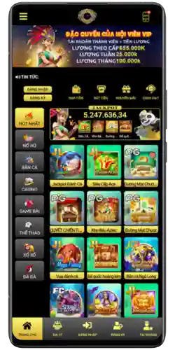 Thưởng thức hàng trăm máy slot với đồ họa sống động và tính năng đặc biệt.
